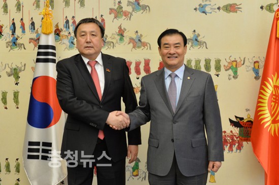 강창희 국회의장은 25일 오전 국회접견실에서 국회 초청으로 한국을 방문 중인 아실벡 제엔베코프(Asilbek ZHEENBEKOV) 키르기즈공화국 국회의장 일행을 접견하고 교류확대 및 경제협력을 포함한 양국 간 실질 협력 확대방안에 대해 논의한 후, 양국 의회 간 협력협정서를 체결했다.