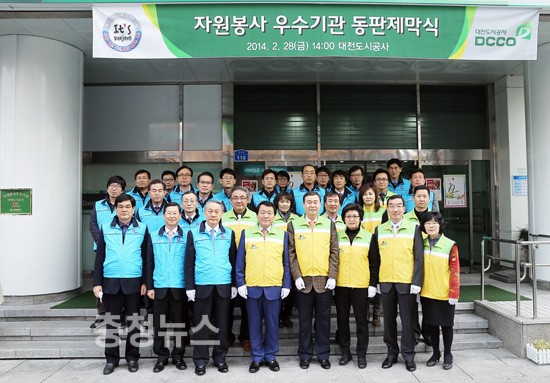 대전시는 28일 오후 중구 중앙로에 소재한 대전도시공사에서 염홍철 대전시장, 홍인의 대전 도시공사 사장, 남재동 자원봉사연합회장, 이인학 자원봉사지원센터장, 대전 도시공사 임직원 등 50여명이 참석한 가운데 자원봉사 우수기업 동판 제막식을 개최하였다.