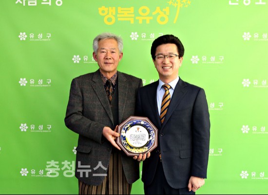 허태정 유성구청장은 10일 ‘바구니 둥구나무제 보존회’(회장 이종획)로부터 감사패를 받았다. 이번 감사패는 평소 보존회에 대한 지원과 관심에 대해 회원들이 감사의 마음을 담아 전달했다.