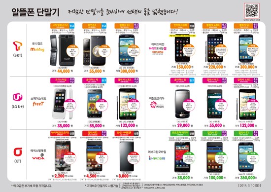 한편 알뜰폰 사업자별로 이벤트가 열린다. E사는 자급제 단말기인 인터파크 큐브폰을 구입해 가입하면 기본료를 1개월 면제해 준다. 또 M사는 제휴업체를 통해 자동차보험에 가입하면 보험금의 10% 상당의 금액을 통신비에서 할인해준다.
