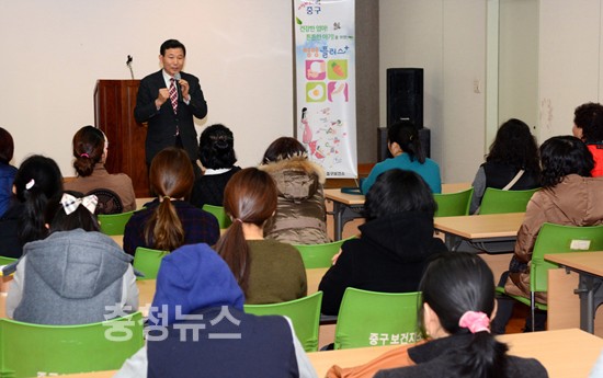 대전시 중구(구청장 박용갑)는 11일 보건지소에서 영양 위험요인이 있는 지역 내 임산부 및 영유아 영양플러스사업 수혜자 80여명을 대상으로 건강한 식생활 개선을 위한 영양교육을 실시했다.