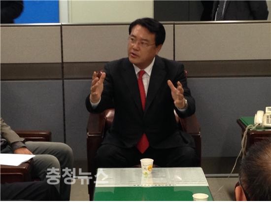 새누리당 정진석 충남도지사 예비후보가 11일 천안시청 브리핑룸에서 열린 기자간담회를 갖고 "박근혜 정부의 '경제혁신 3개년 계획'은 주인공은 충남이어야 한다"고 주장했다.