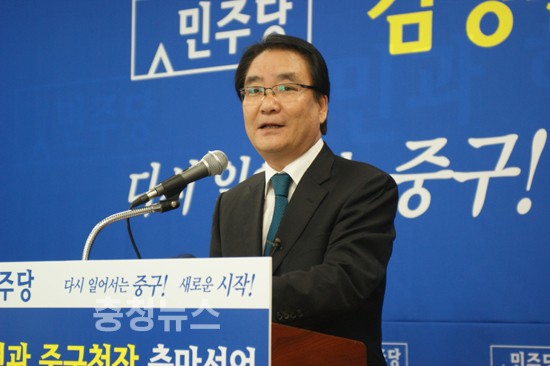 김영관 前 대전시의회 의장이 17일 6.4 지방선거 대전 중구청장 출마를 공식 선언했다. 김영관 前 의장은 이날 민주당 대전시당 회의실에서 출마 기자회견을 갖고 “20년간 쌓아온 정치경험과 행정경험 등 모든 역량을 총동원해 중구를 변화시키고 발전시켜 나아가는 구정 책임자로서의 역할을 다하고자 출마를 결심했다”고 밝혔다.