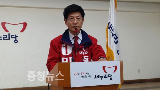 ▲ 새누리당 민경직 동구청장 예비후보가 기자회견문을 낭독하고 있다.