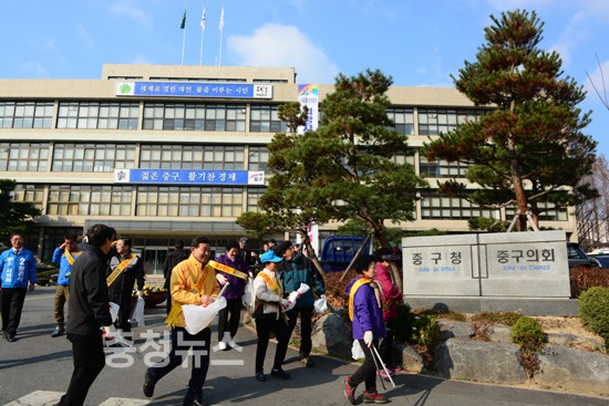 대전시 중구(구청장 박용갑)는 21일 해빙기를 맞아 겨우내 방치된 쓰레기를 수거하고 거리를 청소하는 등 깨끗하고 쾌적한 환경을 조성하기 위해 새봄맞이 범구민 대청소 행사를 실시했다.