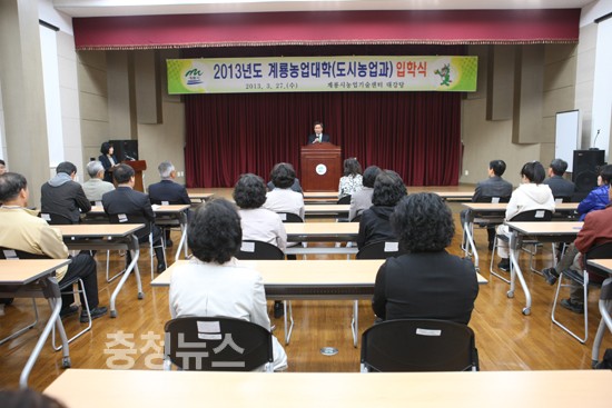 계룡시 농업기술센터(소장 김석조)는 26일 대강당에서 이기원 시장을 비롯한 입학생과 가족 등 50여명이 참석한 가운데 ‘2014년도 계룡농업대학’ 입학식을 가졌다.