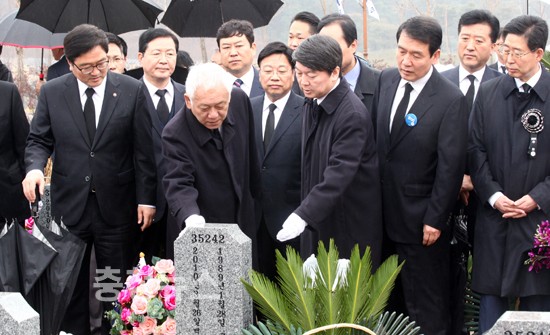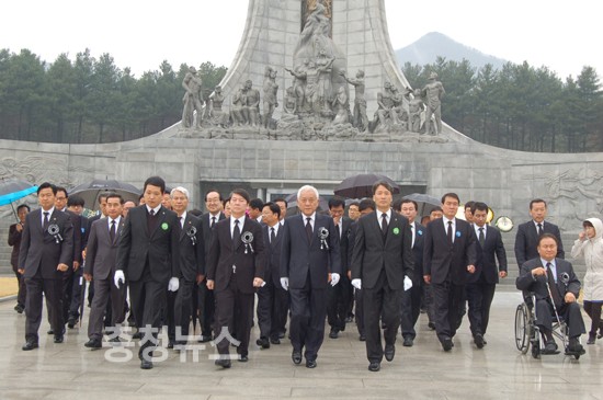 새정치민주연합 공동창당준비위원장을 비롯한 주요인사와 새정치민주연합 대전시당 지도부, 지방선거 출마자 등이 26일 국립대전현충원에서 천안함 용사 4주기를 맞아 천안함 용사 묘역과 현충탑을 참배했다.