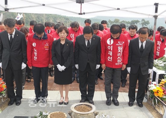 참배에는 이장우 시당위원장을 비롯해 민병주 유성구 조직위원장, 6·4지방선거 대전지역 후보자 100여명과 당직자 등 200여명이 참석했다.