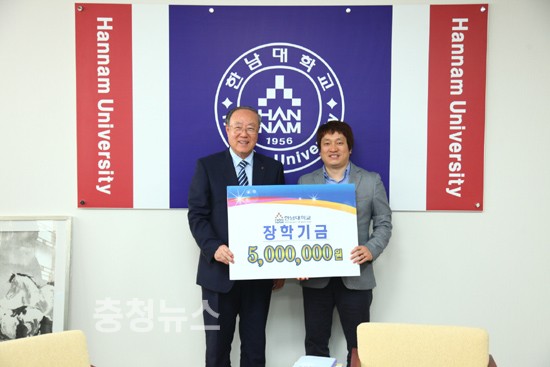 한남대는 지난 1월 성모눈빛안과와 '한남대학교 협력병원 협약서 및 대학발전기금(장학금) 기탁 약정서 전달식'을 가졌으며, 성모눈빛안과에서 3년간 총 2천만원의 대학발전기금(장학금) 기탁을 약정함에 따라 금번에 1차분으로 5백만원의 장학금을 전달했다.