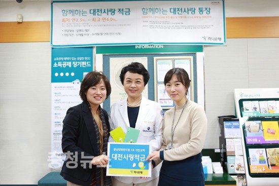 이번에 김봉옥 병원장이 가입한 대전사랑 적금 통장은 은행에서 가입실적의 0.1%를 기금으로 출연해 지역 복지와 문화, 교육사업에 환원하게 된다.