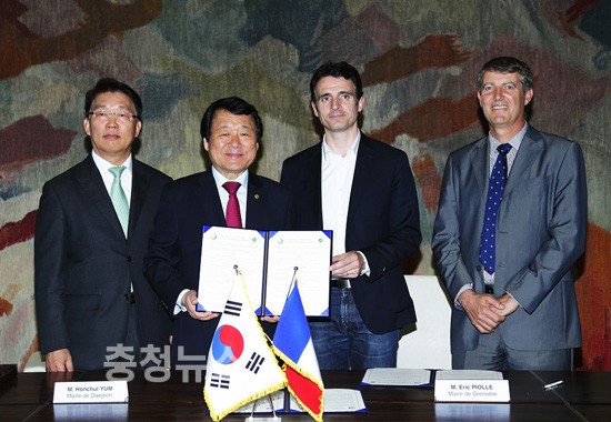 이날 그르노블 시청에서 염 시장과 에릭 피올르 그르노블시장이 서명한 각서의 주요내용은 ▲교육, 연구개발, 비즈니스 및 산업분야 긴밀한 협조로 상호 경험 공유 및 역량 발전 노력 ▲상호 소재 기업, 대학, 연구소 및 기타 기관의 상호 이익 도모를 위해 윈-윈 기회 제공 ▲공동목표를 달성하기 위해 적극 협력 지원 한다는 내용 등이다.