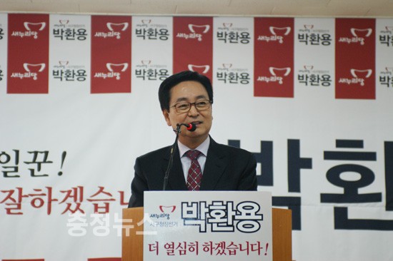 박환용 청장은 이날 새누리당 대전시당 3층 강당에서 기자회견을 열고 “4년 전 다짐과 각오를 되새기며 서구민 앞에 다시 섰다”며 “세계에서 가장 행복한 도시 서구의 꿈을 중단 없이 이루어 더 큰 도약을 위해 재선에 도전한다”고 출사표를 던졌다.