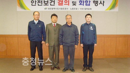 대전도시철도공사는 17일 본사 회의실에서 협력업체 대표들을 초청해 '안전보건결의 및 화합행사'를 가졌다. ▲ (왼쪽부터) 김기원 공사 기술이사, 협력업체 '에이스'사의 김중환 대표, 박상덕 공사 사장, 한성수 공사 노조위원장 공사는 앞으로 협력업체의 안전보건활동을 지원하는 등 상생프로그램을 가동해 상호 발전에 노력하기로 했다. 저작권자 © 충청뉴스 무단전재 및 재배포 금지 최온유 기자 다른기사 보기 기사가 마음에 드셨나요? 충청뉴스 좋은 기사 후원하기 1,000원 3,000원 5,000원 10,000원 30,000원 50,000원 직접입력 비회원 약관동의하기 ※ 소중한 후원금은 더 좋은 기사를 만드는데 쓰겠습니다.