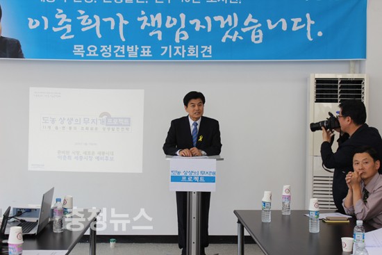 새정치민주연합 이춘희 세종시장 후보는 15일 세종선관위에서 후보 등록을 마치고 자신의 선거사무소에서 일곱번째 목요정책발표회를 개최, ‘도농상생의 무지개 프로젝트 : 11개 읍․면․동의 조화로운 상생발전전략’이라는 주제로 각 지역별 정책을 발표했다.