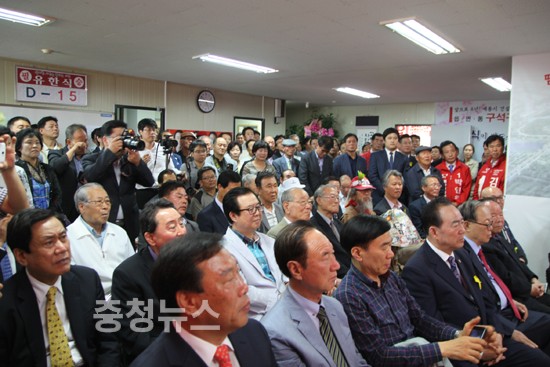 이날 개소식에는 서청원, 이인제 공동선대위원장, 이혜훈 최고위원, 이명수 의원, 이우현 의원, 이운용 의원, 조계종 전 총무원장 자승스님, 최민호 전 행정도시건설청장, 홍순규 전 군수, 이기봉 전 군수 등 다수의 주요인사와 주민 1천 여명이 참석해 성황을 이뤘다.