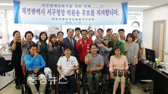 대전지체장애인협회 서구지회가 새누리당 박환용 서구청장 후보 지지를 전격 선언했다.