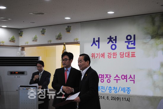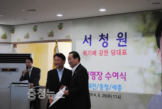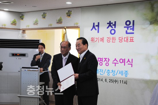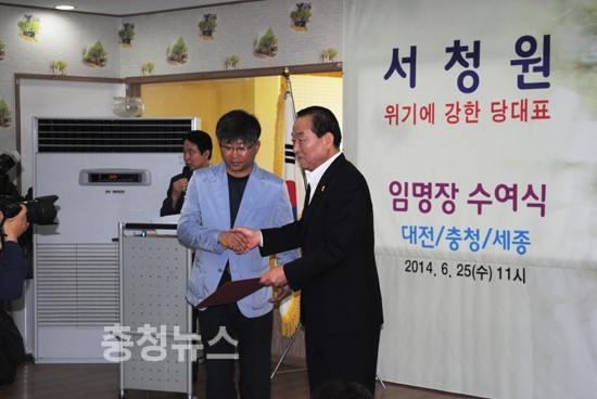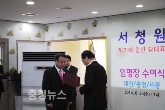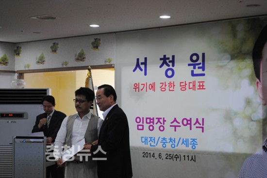 대전지역 한 음식점에서 자신을 지지하는 핵심 측근들에게 임명장을 주고 오는 7,30 전당대회 당대표 선거에서 최선을 다해줄 것을 당부했다.
