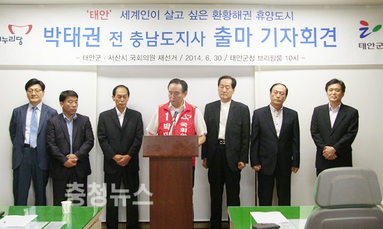박태권 전 충남지사는 30일 오전 서산시청과 태안군청 브리핑룸에서 출마 기자회견을 열고 “그동안 쌓아온 모든 경험과 역량을 고향발전을 위해 마지막 혼신의 힘을 쏟아 서산·태안 행복시대를 열겠다”며 지지를 호소했다.