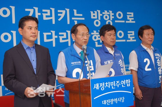 새정치민주연합 대전시당 김창수, 박영순, 송용호, 송행수 대덕구 국회의원 예비후보자들이 1일 오후 긴급 공동기자회견을 최근 떠도는 ‘전략공천설’에 대해 강하게 반발했다.