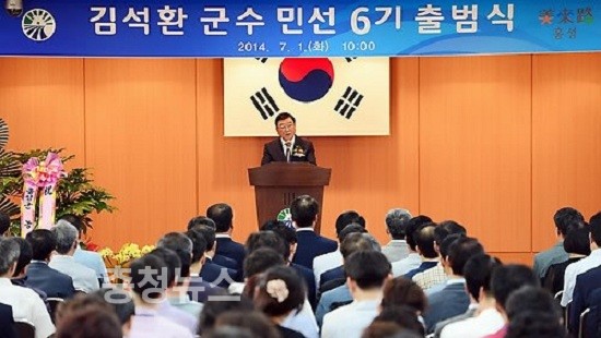 김석환 홍성 군수는 1일 군청 대강당에서 직원 300여명이 참석한 가운데 취임사에서 “홍주시 승격의 기반을 튼튼히 할 것” 이라며 군정운영의 방향을 밝혔다.