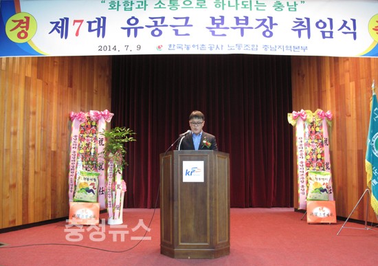 한국농어촌공사 노동조합 충남지역본부는 9일 오전 11시 충남본부 대강당에서 유공근(50) 제 7대 본부장 취임식을 가졌다고 밝혔다.