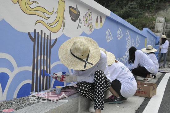현장에는 목원대 한국화전공 미대생 13명과 지도교수 4명이 함께 한여름 폭염속에서도 마을의 분위기가 새로워지는 모습들을 현장체험하며 마을 주민들과 함께 어우러지는 뜻깊은 여름방학을 보내고 있다.