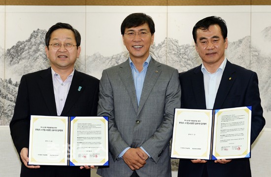 도는 23일 도청 접견실에서 안희정 지사와 정철수 충남신용보증재단 이사장, 김종준 하나은행장이 참석한 가운데 ‘소기업·소상공인 금융지원 업무협약’을 체결했다고 밝혔다.