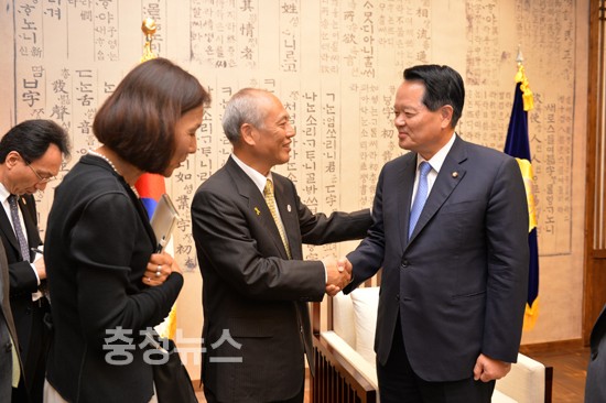 정의화 국회의장은 24일 오전 의장접견실에서 서울시 초청으로 방한 중인 마스조에 요이치(舛添 要一) 일본 도쿄 도지사 일행을 접견하고 양국 간 교류‧협력 증진 방안 등에 대해 의견을 나눴다.