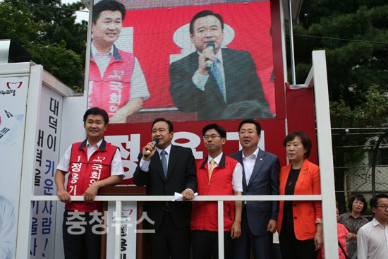한편 지난 26일 오전 대덕구 중리동시장을 방문 이완구 원내대표를 비롯한 이장우, 민병주,홍문표,박윤옥 의원이 지원유세를 펼치며 집권 여당후보인 정 후보가 당선되어야 회덕 IC 장동 탄약창 이전 문제 등 대덕구 숙원사업을 마무리할 수있다며 지지를 호소했다.
