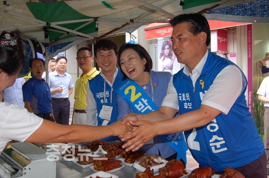 새정치민주연합 박영선 원내대표가 28일 대전 대덕 국회의원 보궐선거 막바지 총력전에 나섰다. 박 원내대표는 이날 오후 대전을 방문, 신탄진역 앞에서 박영순 후보 지원유세를 펼치며 “도시철도 2호선을 반드시 신탄진까지 연장되도록 지원하겠다”고 강조했다.