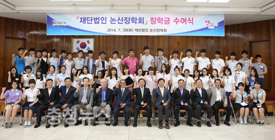 (재)논산장학회(이사장 윤덕병)는 29일 논산시청 회의실에서 2014년도 장학금 수여식을 가졌다. 이날 장학금 수여식에는 양기락 한국야쿠르트 부회장, 황명선 논산시장 등 (재)논산장학회 임원과 장학생, 학부모 등 110여명이 참석했다.
