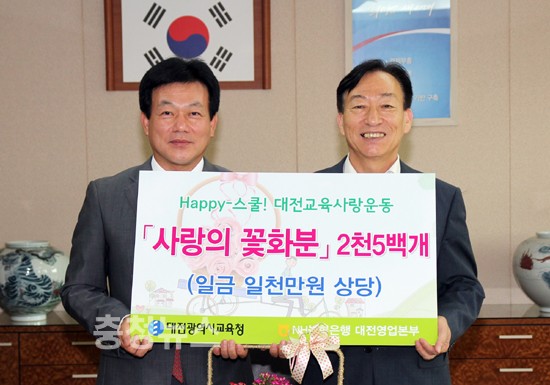 대전시교육청(교육감 설동호)은 1일 NH농협 대전영업본부(본부장 박송현)와 “꽃사랑 농업사랑” 체험교육에 필요한 꽃 화분 2,500개(금일천만원 상당)에 대한 기탁식을 가졌다.