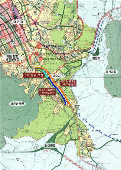 대전시는 지난 ‘04년 11월부터 추진해온 가오동길 확장공사(폭15m를 폭25m로 확장)에 대하여 실시설계용역을 착수했다고 밝혔다.