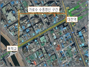 구 관계자는 “이 구간은 대전의 얼굴이면서 통행량이 가장 많은 교통의 중심지이지만, 거대하고 부패한 버즘나무가 신호등과 교통표지판을 가리고, 봄에는 꽃가루가 날리는 등 쾌적한 가로경관을 저해하는 수목이 많다”고 말했다.