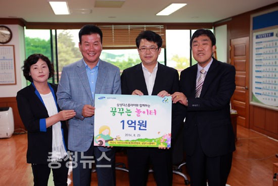 아산시 탕정면에 소재한 삼성디스플레이가 지역 청소년의 예술 재능 향상을 위해 25일 아산시청을 방문해 청소년 예술 재능 지원사업인 ‘꿈꾸는 놀이터’ 사업비 1억 원을 전달했다.