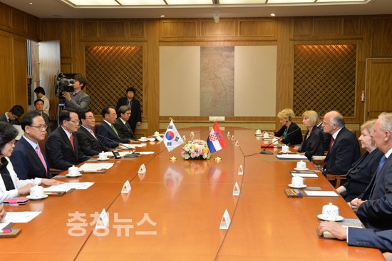 정의화 국회의장은 9.1(월) 오후 5시 국회접견실에서 요십 레코(Josip Leko) 크로아티아 국회의장을 맞이하였다. 정의화 의장은 크로아티아 국회의장으로서는 처음으로 방문한 레코 의장을 환영하며, 앞으로도 정치, 경제, 문화 각 분야에서 지속적인 교류협력을 이어갈 것을 제안했다.