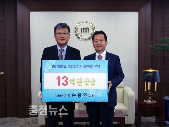현재 대전상공회의소 및 한국공작기계산업협회의 수장을 맡고 있는 손종현 남선기공 회장은 충남대학교 정상철 총장을 만나 학생들을 위해 써달라며 13억 원 상당의 실습용 연구기자재를 전달하기로 약속한 것.