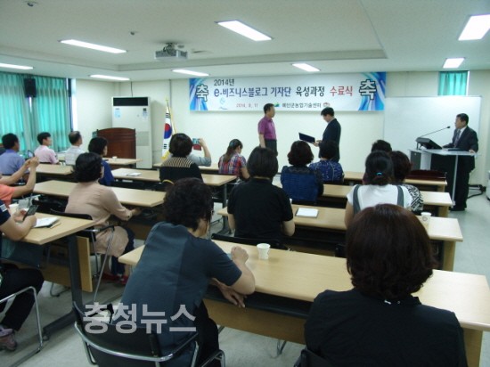 예산군농업기술센터(소장 이승주)는 11일 센터내 세미나실에서 30명의 e-비즈니스 블로그 기자단 육성과정 교육생들의 수료식을 진행했다.