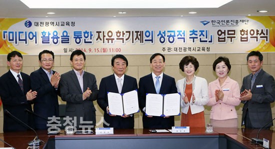 대전시교육청(교육감 설동호)은 15일 대전교육청 대회의실에서 한국언론진흥재단과 중학교 자유학기제 운영을 위한 MOU 협약을 체결했다고 밝혔다.