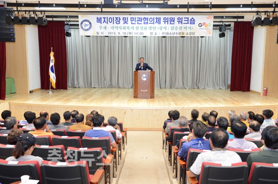 김승권 박사는 강의를 통해 “요즘 이슈가 되고 있는 복지사각지대 해소를 위해 위촉된 복지이장 및 민관협의체의 효과적인 활동을 위해서는 공공과 민간의 협력이 우선되어야 하는데, 이에 대한 대안으로 지역민을 대표하는 복지이장단과 관을 대표하는 읍면의 담당자들이 중심이 된 민관협의체의 구성이야말로 지역의 문제를 넘어 지역사회복지 활성화에 이르는 길”이라고 강조했다.