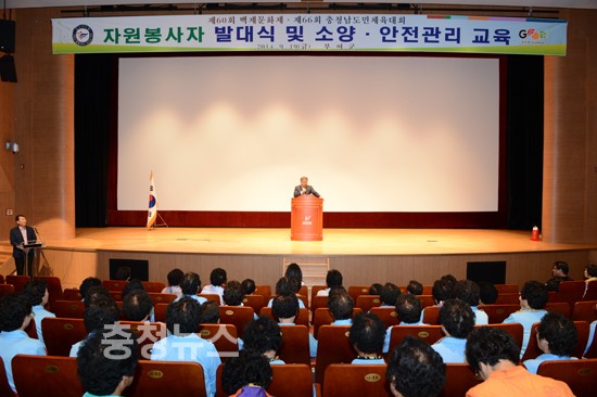이어 실시된 소양교육에서 태평양교육센터 전효정 전문강사는 ‘서비스 마인드 및 기본 예절’이란 주제로 백제문화제와 도민체전 성공을 위한 친절 마인드 함양 교육을 하였으며, 군 관계자 및 부여소방서는 현장 안전관리 교육을 실시했다.