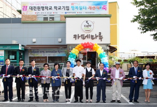 대전원명학교(교장 노한호)는 26일 학교 대강당에서 장애 학생들이 이용할 수 있는 학교기업 행복일터 개관식을 개최했다고 밝혔다.