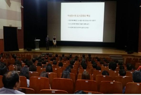 이날 황희연 충북대학교 도시공학과 교수가 ‘도시정책의 패러다임의 변화’, ‘도시재생의 개념과 유형’, ‘창원 도시재생 사례’를 주제로 강의를 진행했다.