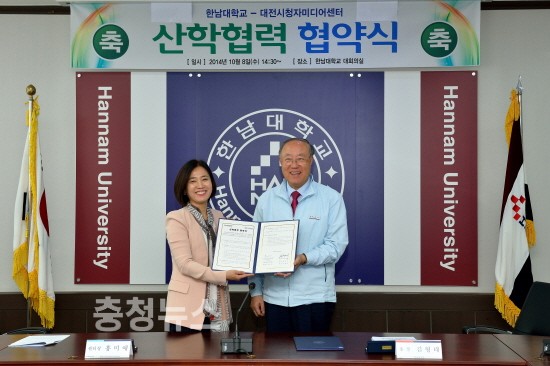대전시청자미디어센터와 한남대는 8일 한남대 대회의실에서 ‘미디어 인력 양성과 건전한 미디어문화 확산’을 위한 업무협약을 체결했다. 양 기관은 이번 협약에 따라 미디어콘텐츠 제작 및 인력 양성, 미디어 강좌 개설 및 학점 연계, 교육 프로그램 개발․운영 등 미디어교육 활성화를 위해 상호 협력하기로 했다.
