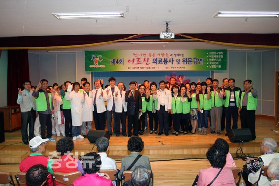 이날 유성노인복지관에서 제4회 의료 봉사 및 위문 잔치에는 5백여명의 유성구 노인들이 동참한 가운데 프로그램구성은 1부 어르신들에게 식사 봉양, 2부 가수와 춤꾼들의 공연, 3부 의료 봉사 순으로 진행됐다.