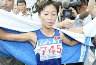 '북한 여자 육상의 간판' 함봉실(31)이 1일 인천 문학월드컵경기장에서 열린 제16회 인천아시아육상선수권 여자 10,000 결승에서 중국의 바이쉬에(33분34초74)와 일본의 유미 사토(33분42초11)에 이어 34분35초30으로 3위를 차지하며 북한에 대회 첫 메달을 안겼다.