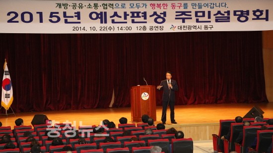 동구(구청장 한현택)는 22일 동구청 공연장에서 주민참여예산위원 및 구․동의 단체 임원들과 일반 주민 등 500여명이 참석한 가운데 ‘2015년 예산편성 주민설명회’를 개최했다.