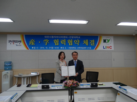 충남지역 미디어 교육 거점화와 화면해설 작가양성과정에 연계 ▲ 홍미애 대전시청자미디어센터장(왼쪽)과 홍영기 건양대학교 산학협력단장 건양대학교와 대전시청자미디어센터가 27일 산학 협약을 체결했다. 홍미애 대전시청미디어센터장은 건양대학교 산학취업본부 세미나실에서 홍영기 건양대학교 산학협력단장과 만나 미디어 인력 양성과 건전한 미디어 문화확산을 위한 업무협약을 체결했다. 두 기관은 충남지역 미디어 교육 거점화와 화면해설 작가양성과정에 대한 학점 연계 등을 협력하게 된다. 저작권자 © 충청뉴스 무단전재 및 재배포 금지 조홍기 기자 다른기사 보기 기사가 마음에 드셨나요? 충청뉴스 좋은 기사 후원하기 1,000원 3,000원 5,000원 10,000원 30,000원 50,000원 직접입력 비회원 약관동의하기 ※ 소중한 후원금은 더 좋은 기사를 만드는데 쓰겠습니다.