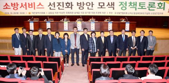 대전시의회(의장 김인식)는 28일 시청 대강당에서 김동섭 의원(새정치민주연합, 유성구2)과 이상민 국회 법제사법위원장 공동 주관으로‘소방서비스 선진화 방안 모색을 위한 정책토론회’를 개최했다.