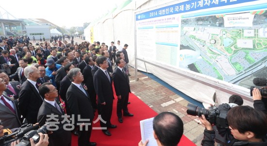 ‘2014 대한민국국제농기계자재박람회’가 29일 여인홍 농림수산식품부차관, 김돈곤 충청남도 농정국장, 구본영 천안시장 등 주요내빈과 업체관계자, 관람객 등 5000여명이 참석한 가운데 개막식을 갖고 첫날 관람객을 맞았다.